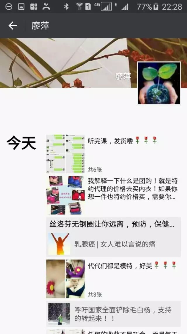 我有一个初中同学,叫廖萍,以前在苏宁电器卖冰箱,已做得非常好了。现开始开始做微商,代理丝洛芬品牌内衣,已经做到一级代理,她的微信如能打动人心: